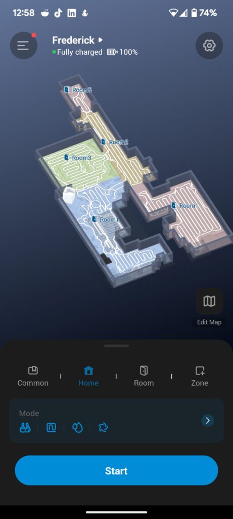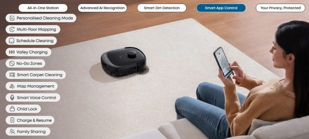 Anyone who knows me, knows that I lead a pretty busy life, and hate relying on my wife to keep the house (it’s not fair on her). The Omni E25 has become a game changer. Not only was it SUPER easy to set up, but it used its fantastic AI.see function to map the whole of the downstairs in just a few minutes. It new all the different surfaces and even detected things like power outlets!