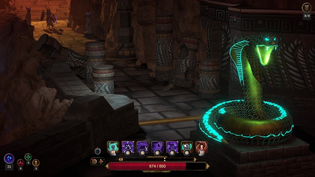 When it gets down to the visuals and the art style it’s another area where, despite what I said when talking about the world of The Book of Aaru, it felt like it pulled up just a little short. As much as it’s clear that we’re in a sort of Egyptian world, there isn’t really anything to make it pop visually when on a run. There’s room for these strange mechanical or sci-fi elements, particularly around things like the traps, to really give a start, contrast, and offer something really exciting visually, but a lot of what I’m saying just kind of feels like it’s off the shelf a little bit. Conceptually, it’s really interesting in execution…it’s bizarre and bland.
